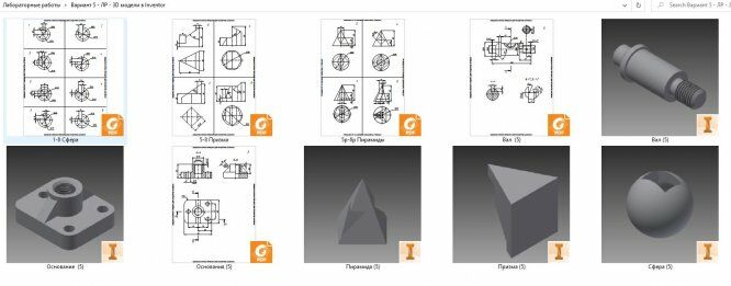 В архиве - комплект задач (5 задач - призма, пирамида, шар со сквозным отверстием, основание и вал) к лабораторным работам по инженерной и компьютерной графике за 2 семестр (Autodesk Inventor).