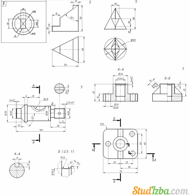 К каждой задаче сделан 3D модель детали и чертеж в формате pdf. Все выполнено в программе Autodesk Inventor