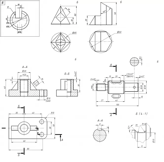 К каждой задаче сделан 3D модель детали и чертеж в формате pdf. Все выполнено в программе Autodesk Inventor