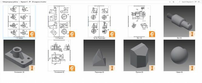 В архиве - комплект задач (5 задач - призма, пирамида, шар со сквозным отверстием, основание и вал) к лабораторным работам по инженерной и компьютерной графике за 2 семестр (Autodesk Inventor).