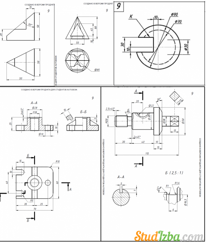 К каждой задаче сделан 3D модель детали и чертеж в формате pdf. Все выполнено в программе Autodesk Inventor