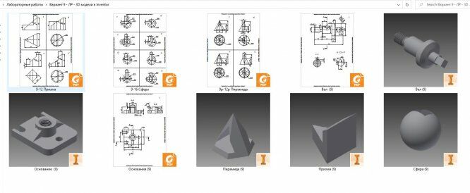 В архиве - комплект задач (5 задач - призма, пирамида, шар со сквозным отверстием, основание и вал) к лабораторным работам по инженерной и компьютерной графике за 2 семестр (Autodesk Inventor).