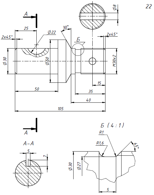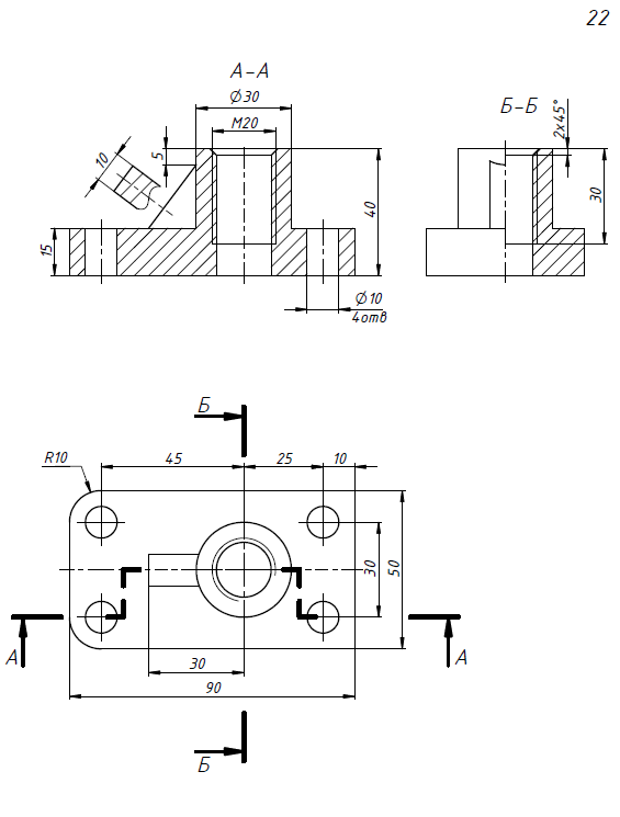 Лабораторная работа: Autodesk Inventor. Лабораторные работы. Детали. (Базовый курс) вариант 22