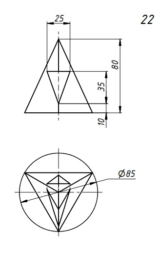 В архиве - комплект задач (5 задач - призма, пирамида, шар со сквозным отверстием, основание и вал) к лабораторным работам по инженерной и компьютерной графике за 2 семестр (Autodesk Inventor).