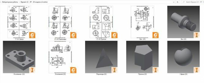 К каждой задаче сделан 3D модель детали и чертеж в формате pdf. Все выполнено в программе Autodesk Inventor