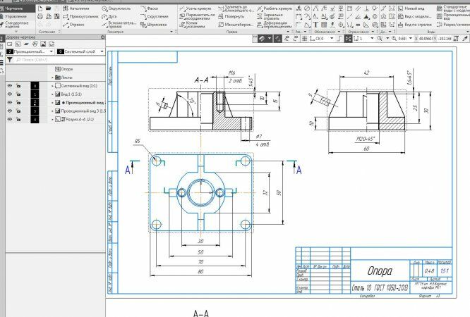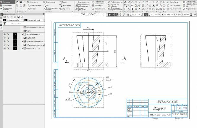 Создание 2D-чертежа по модели. Чертеж деталей "Втулка", "Опора"