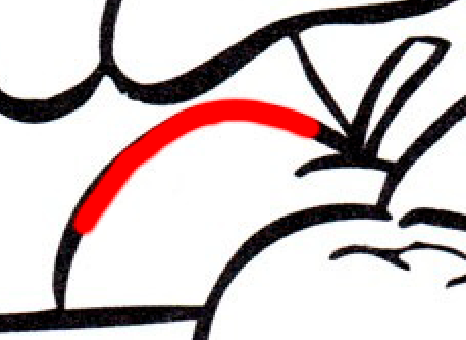 Подобрав кисть размером близким к толщине контура и черным цветом создаем на слое 1 контуры предложенного рисунка (для наглядности в примере был выбран красный цвет).