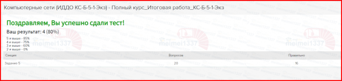 Для студентов ИДДО НИУ «МЭИ» по предмету Компьютерные сетиИтоговый тест - 80%Итоговый тест - 80%