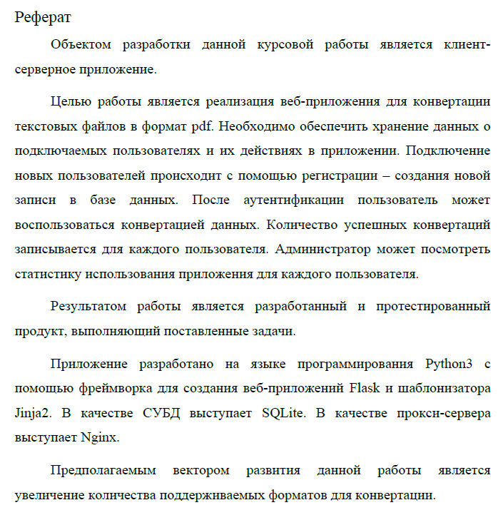 Главная » Учебные материалы » Компьютерные сети » Домашние задания » МГТУ им. Н.Э.Баумана » 7 семестр » Клиент-серверное приложение по конвертации текста в pdf-файлы