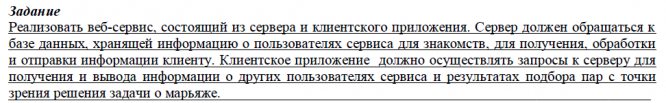 Главная » Учебные материалы » Компьютерные сети » Домашние задания » МГТУ им. Н.Э.Баумана » 7 семестр » Решение задачи о марьяже и применение результата в веб-сервисе для знакомств