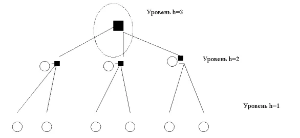 N – последняя цифра номера зачётной книжки студента. Требуется построить древовидную иерархическую сеть минимальной длины, обеспечивающую многоуровневое покрытие (так, как на рисунке ниже) исходных узлов.