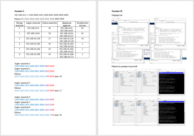 - Разделить сеть на подсети в соответствии с системой адресации IPv4. Выделить достаточно адресов для размещения x+20 хостов в подсетях 1 и 2, x+10 в подсети 3, по 2 адреса интерфейса на соединения “точка-точка” между маршрутизаторами где x - Ваш номер по списку в ЭУ
