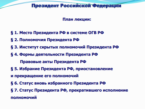 Лекции: Президент РФ