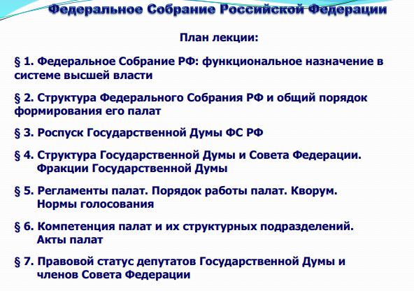Лекции: Федеральное Собрание РФ