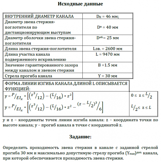 Для студентов МГТУ им. Н.Э.Баумана по предмету Конструирование энергетических ядерных реакторов и реакторных установокДомашнее задание "Исследование проходимости стержня в искривленном канале СУЗ" (вариант №4)Домашнее задание "Исследование проходимости стержня в искривленном канале СУЗ" (вариант №4)