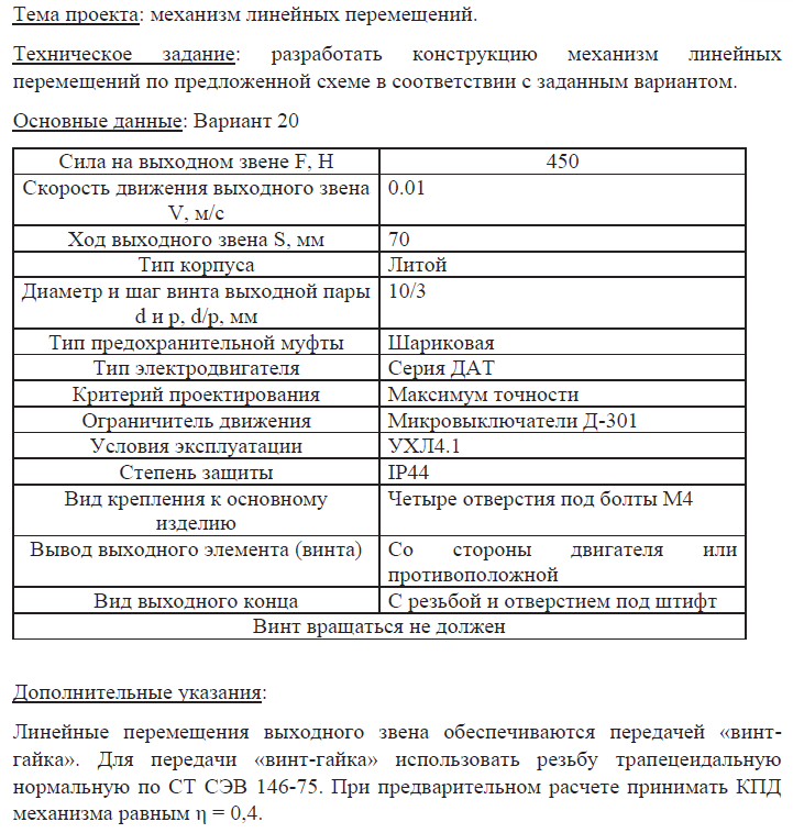 Курсовая работа: Механизм линейных перемещений вариант 20