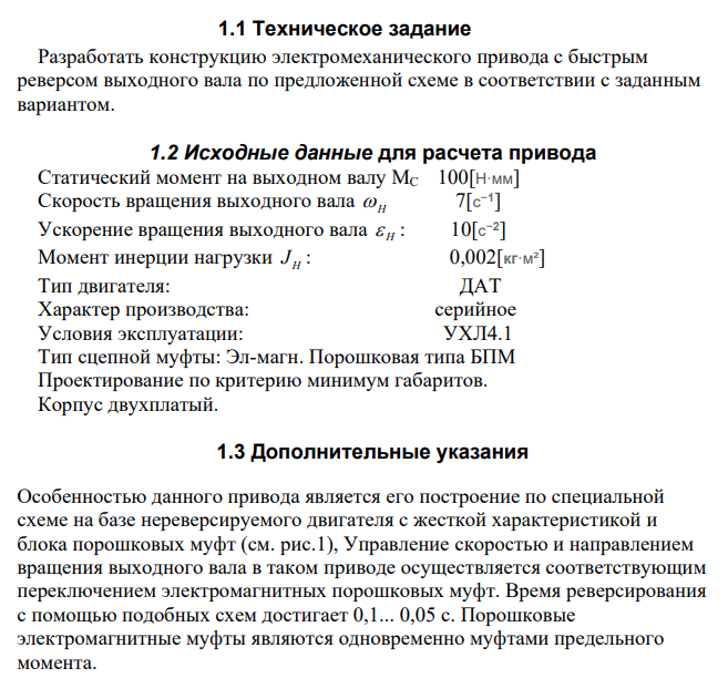 Курсовая работа: ЭМП с быстрым реверсом выходного вала