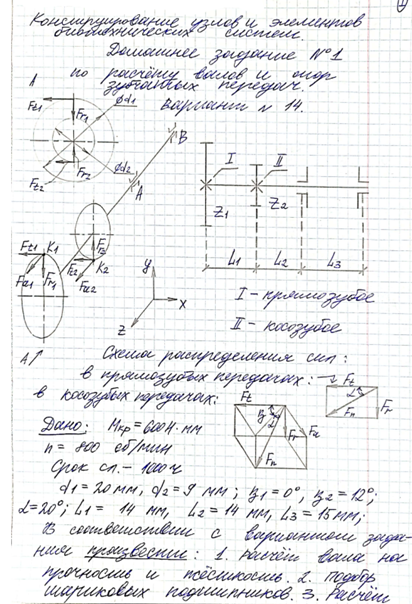 ДЗ 1: Расчет валов и опор зубчатых передач вариант 14