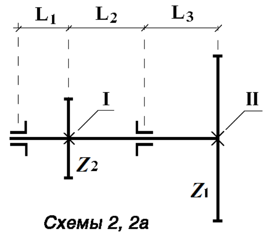 На рис.1 представлена схема промежуточного валика механической передачи приборного электропривода с установленными на нем зубчатыми колесами Z1 и Z2 с диаметрами делительных окружностей d1 и d2. Каждое из колес в соответствии с заданием может быть цилиндрическим прямозубым или косозубым, коническим, а в червячным, винтовым, что определяет наличие или отсутствие осевых сил Fa1 и Fa2.