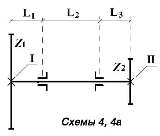 На рис.1 представлена схема промежуточного валика механической передачи приборного электропривода с установленными на нем зубчатыми колесами Z1 и Z2 с диаметрами делительных окружностей d1 и d2. Каждое из колес в соответствии с заданием может быть цилиндрическим прямозубым или косозубым, коническим, а в червячным, винтовым, что определяет наличие или отсутствие осевых сил Fa1 и Fa2.