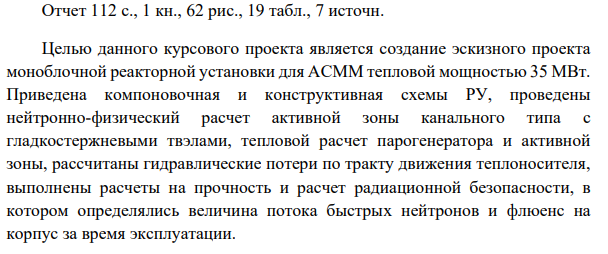 3) максимально грамотная и подробная РПЗ на 110 стр. с описанием конструкции реактора и активной зоны и со всеми необходимыми расчётами в двух форматах - ворд и пдф.