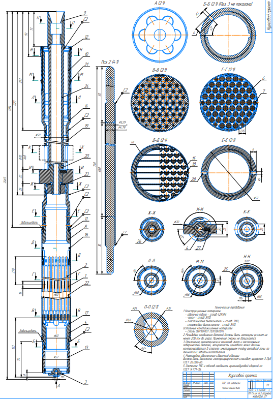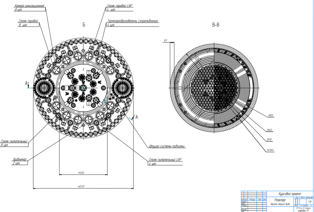 1) 5 листов (2 листа общего вида реактора и 3 листа - конструкции ТВС) - компас и пдф (+ спецификации);