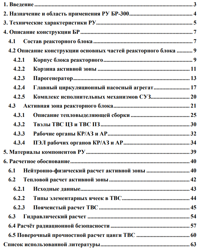 1) подробная расчётная часть: нейтронно-физический расчёт; тепловой расчёт; гидравлический расчёт; поверочный расчёт на прочность элементов конструкции ТВС; расчёт радиационной безопасности.