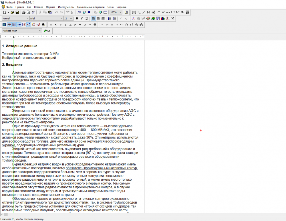 ДЗ: ДЗ "Тепловая мощность реактора: 3 МВт. Выбранный теплоноситель: натрий. Реактор типа БН"