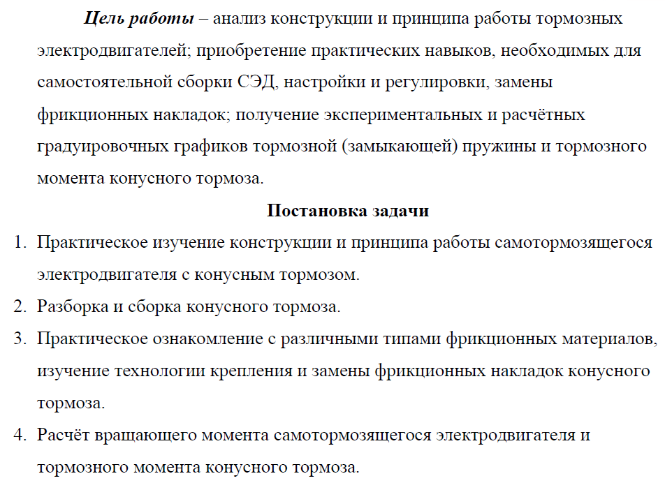 Лабораторная работа: Отчет по лабораторной работе №3 "Изучение конструкции самотормозящегося электродвигателя с конусным тормозом"
