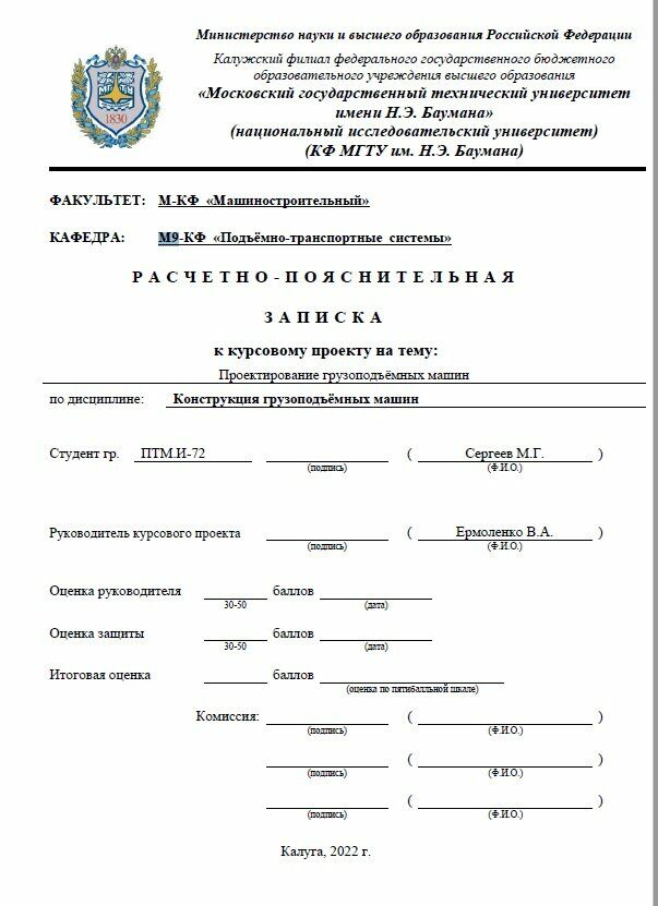 Курсовой проект содержит 5 листа чертежей формата А1, расчетно-пояснительную записку на 31 с., включающую 3 рис., 5 табл., 21 литературных источников, 2 приложения.