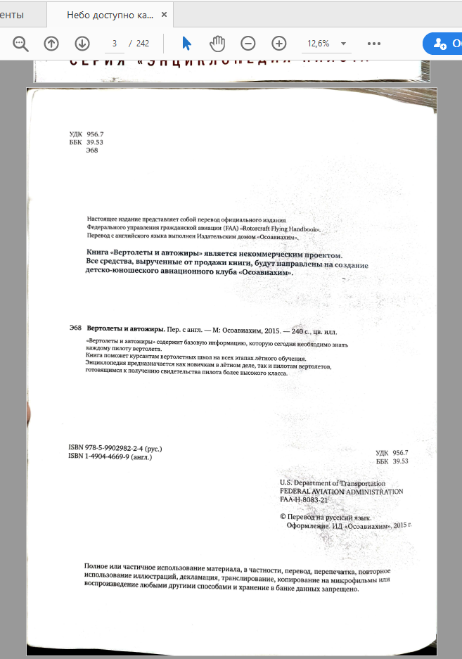 Небо доступно каждому - Вертолеты и автожиры. Серия "Энциклопедия пилота" - Осоавиахим 2015 год, 239страниц, Москва Редчайший экземпляр, скан-копия научной энциклопедии Доступен поиск по тексту PDF д Настоящ издание представляет собой пе р евод о ф ициальн о го издания ерального управления гражданской авиации (FM) «Ro t o rcraft F lyin? _ Handbp ?ю>. Перевод с английского языка выполнен Издательским д о мо м << О с о авиахим » ·~ . ., ._. Книга <Вертолеты и ав то жи р ы» является нек о ммерче,с:к11м проектом. Все средства, вырученные о т п родажи кни гц , будут~~аправлены на создание детско-юн о шеско г о ав и ационного клуба « Ос ё:щв :йахи~» . ..,.·w.