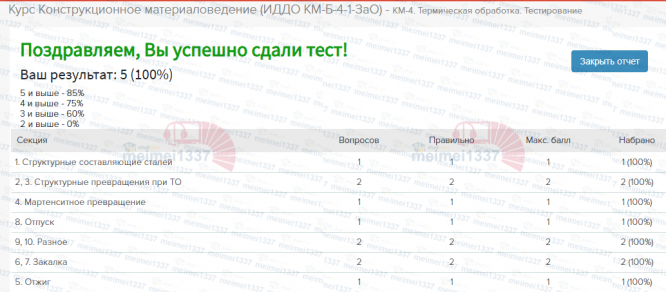 Курс Конструкционное материаловедение - КМ-4. Термическая обработка. Тестирование - 100%