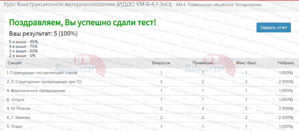💼 База ответов к тесту КМ-4. Термическая обработка (Курс Конструкционное материаловедение) 📊