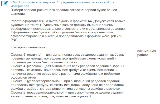 Главная » Учебные материалы » Конструкционное материаловедение » Домашние задания » ИДДО НИУ «МЭИ» » Номер КМ-1 » Вариант 5 » КМ-1. Практическое задание. Определение механических свойств материалов
