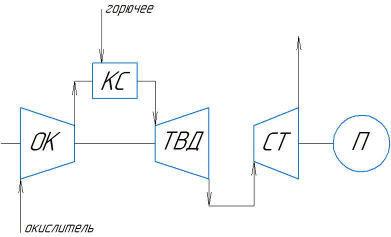 ТВД – турбина высокого давления; СТ – силовая турбина.