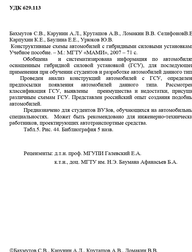 Книга: Конструктивные схемы автомобилей с гибридными трансмиссиями