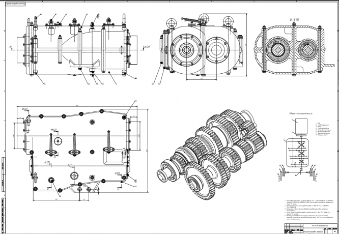 Курсовой проект по проектированию трехвальной соосной коробки переключения передач. Помимо всей необходимой документации была создана 3D модель в Siemens NX 10.0. Оценка по результатам выполнения - отлично.