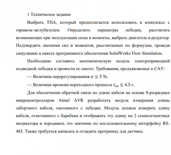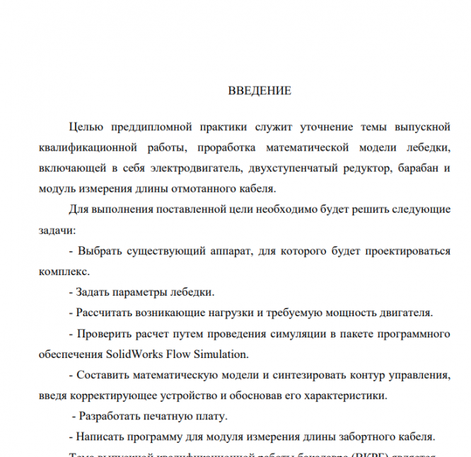 Целью преддипломной практики служит уточнение темы выпускной квалификационной работы, проработка математической модели лебедки, включающей в себя электродвигатель, двухступенчатый редуктор, барабан и модуль измерения длины отмотанного кабеля.