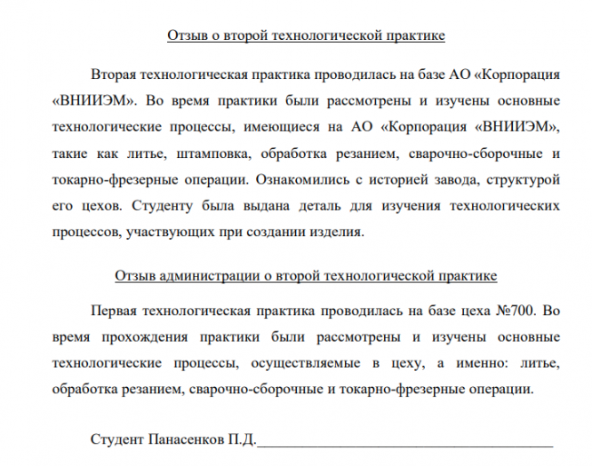 Отзыв о второй технологической практике