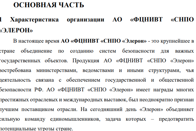 Отчёт по практике: Отчёт по производственной практике - Предприятие АО «ФЦНИВТ «СНПО «Элерон»