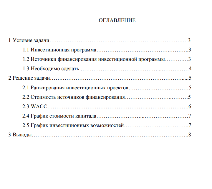 Условие задачи 1.1 Инвестиционная программа Инвестиционная программа предприятия включает 4 проекта, IRR и инвестиционные затраты по которым представлены в Таблице 1. Предполагается, что предприятие имеет неограниченные возможности привлечения капитала. Таблица 1. Инвестиционные затраты и значения внутренней ставки доходности проектов, включѐнных в инвестиционную программу предприятия