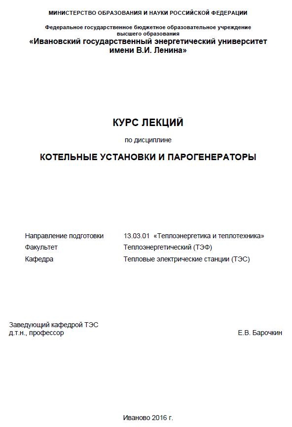 Для студентов ИГЭУ им. Ленина по предмету Котельные установки и парогенераторы (КУиПГ)Барочкин Е.В. - Курс лекцийБарочкин Е.В. - Курс лекций 2025-07-01СтудИзба
