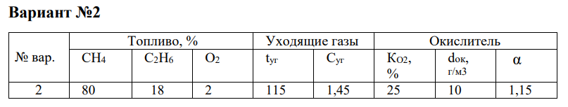 Низшая теплота сгорания горючих газов: (𝑄𝐻𝐶)СН4 = 35,858 МДж/м3; (𝑄𝐻𝐶)С2Н6 =63,81 МДж/м3. Теплотой воздуха и топлива можно пренебречь.