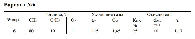 Рассчитать потери теплоты с уходящими газами qуг, % при сжигании