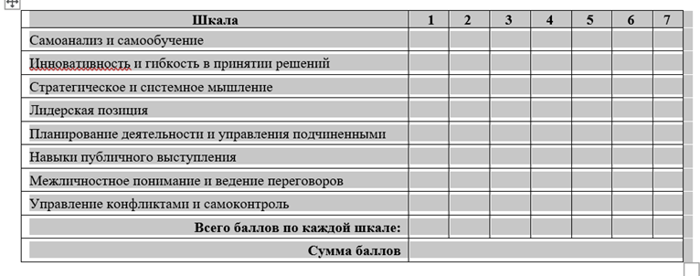 4. Составьте индивидуальный профиль одного из исследуемых сотрудников данной организации по шкале оценки компетенций