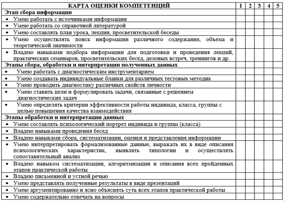 • Оцените качество выполненной работы по карте оценки компетенций