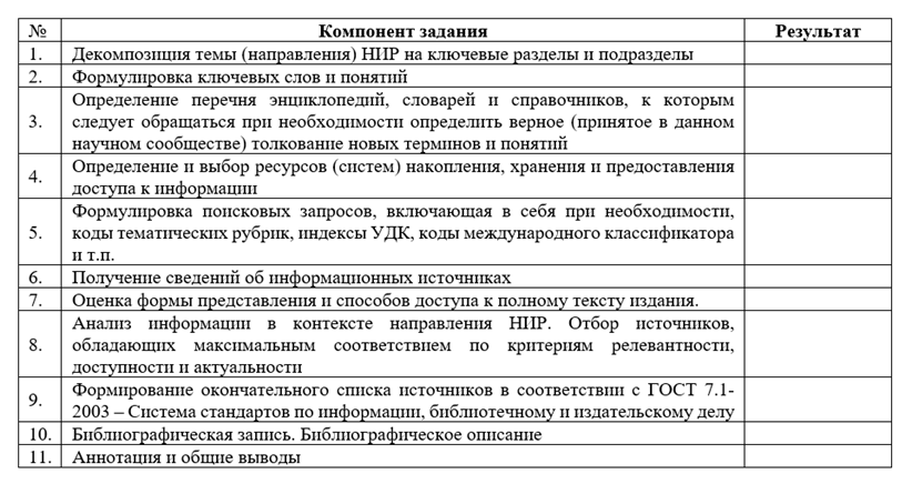 Задание 1. Составление библиографического списка информационных источников по выбранному направлению НИР
