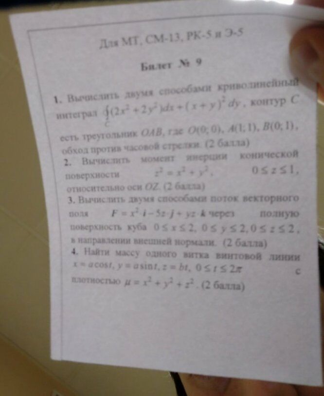 Ответы к контрольной работе: РК-2. Вар-9. Кратные интегралы. Леванков И.В. вариант 9