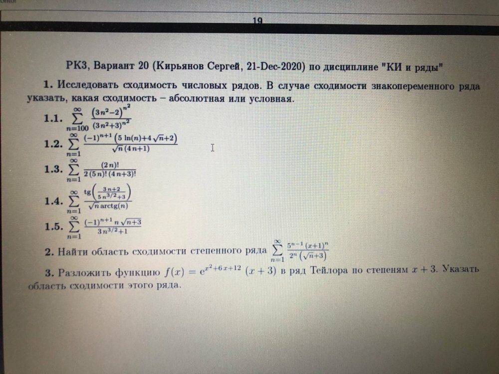 Для студентов МГТУ им. Н.Э.Баумана по предмету Кратные интегралы и рядыРубежный контроль№3 Вариант 20Рубежный контроль№3 Вариант 20