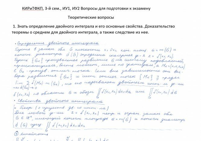 Для студентов МГТУ им. Н.Э.Баумана по предмету Кратные интегралы и рядыТеория - ОтветыТеория - Ответы